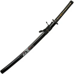 41″ (104.14cm) overall. 30″ (76.2cm) 1045 carbon steel blade. Black cord wrapped handle. Dragon print PVC scabbard. Boxed.