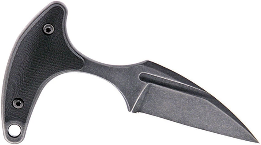 3.5″ overall. 1.88″ dark stonewash Bohler N690 stainless Wharncliffe blade. Black G10 handle. Full tang. Lanyard hole. Black Kydex belt sheath. Boxed.