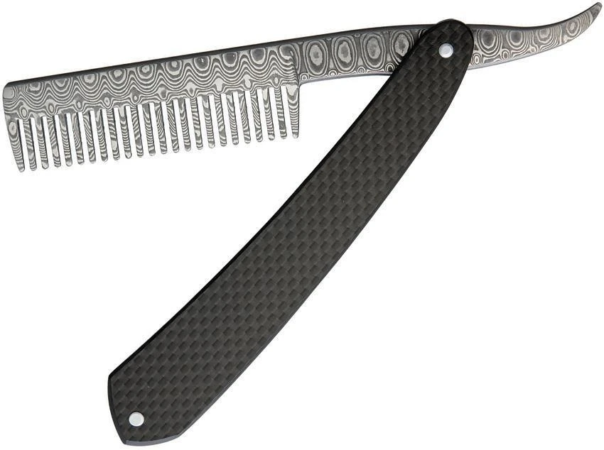 Bastion EDC Straight Damascus Steel Razor Comb W/ Black Carbon Fiber Handle TN07