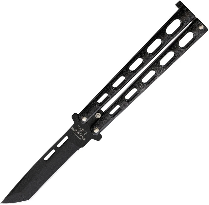 Bear & Son Balisong Black Galaxy 1095HC Steel Tanto Butterfly Knife 115TANGX