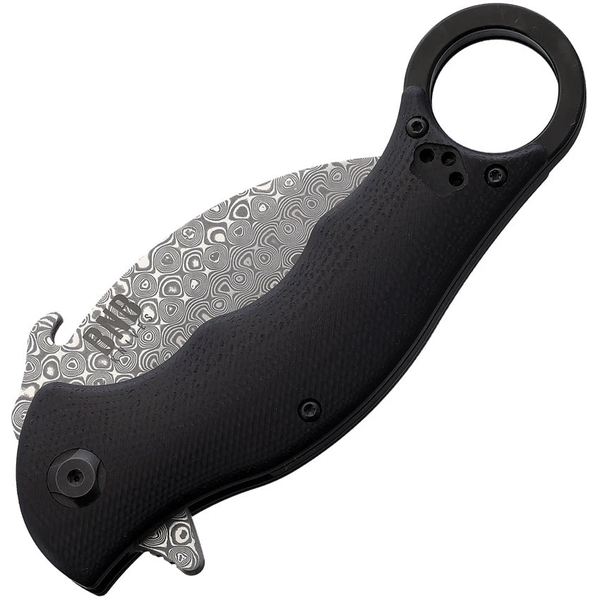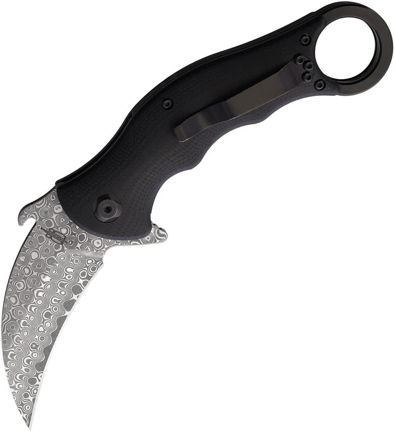 BucknBear Tactical Karambit Linerlock Black G10 Folding Damascus Steel Pocket Knife 1221KFD