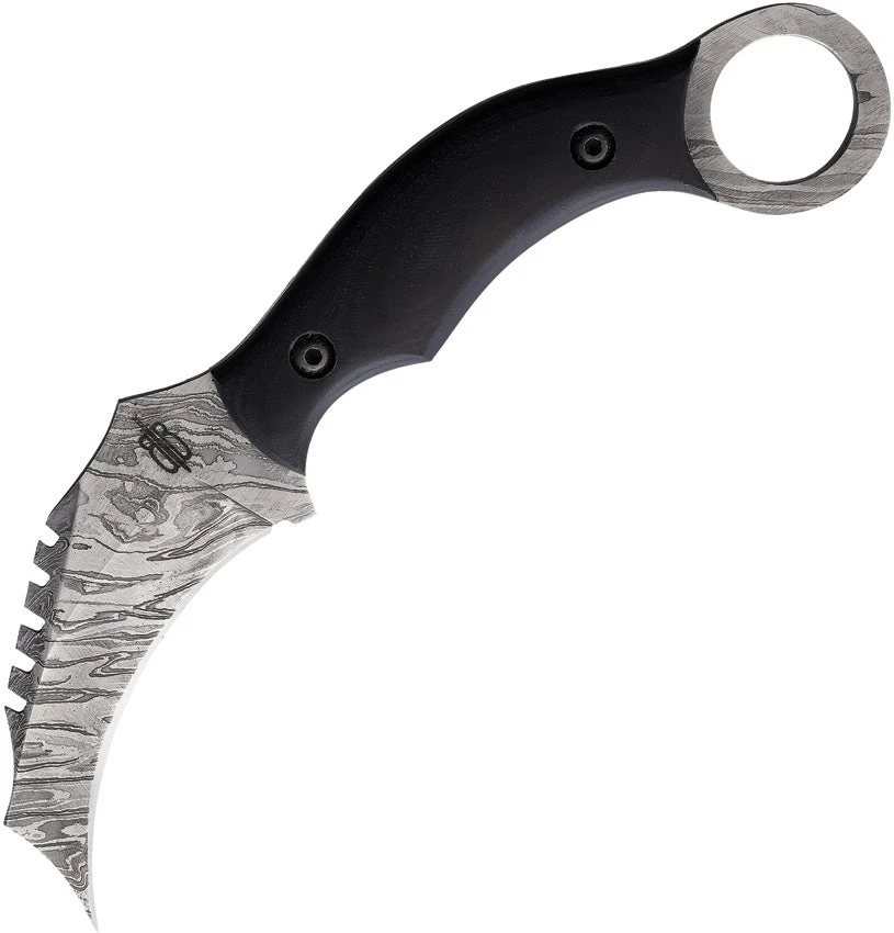 BucknBear Venom Karambit Fixed Blade Knife Black Micarta Damascus 1230KMB