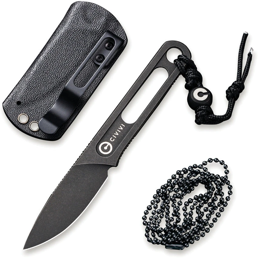 Civivi Minimis Black 10Cr15CoMoV Fixed Blade Neck Knife W/ Kydex Sheath 200261