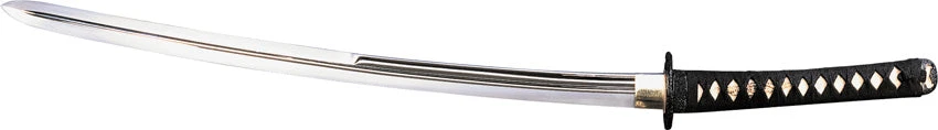 39.25″ (99.7cm) overall. 28.75″ (73.03cm) mirror finish double edge 1060HC steel blade. Black cord wrapped rayskin handle. Emperor Series. Tsuba, fuchi, pommel, and blade collar are nickel silver. Black wood scabbard. Boxed.