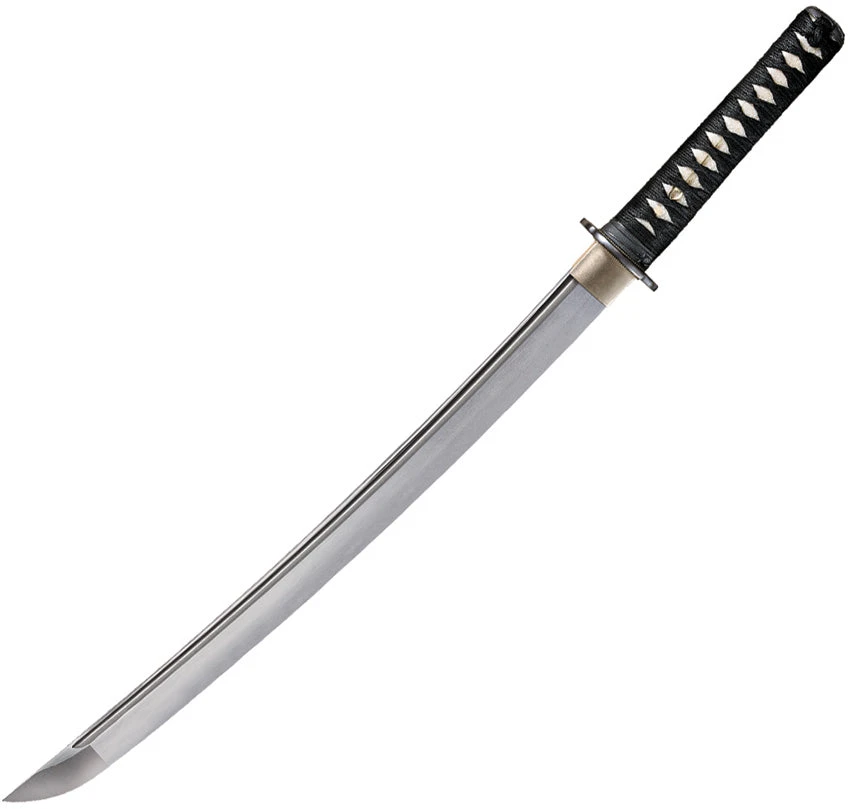 Construction: 1060 Carbon Steel; Overall: 29.5″; Blade: 21″ l Carbon Steel l Standard Edge; Handle: Black l Rayskin; Other Info: Warrior Series. Ray skin handle with black nylon braid and brass Menuki. Black lacquered wood scabbard. Boxed.