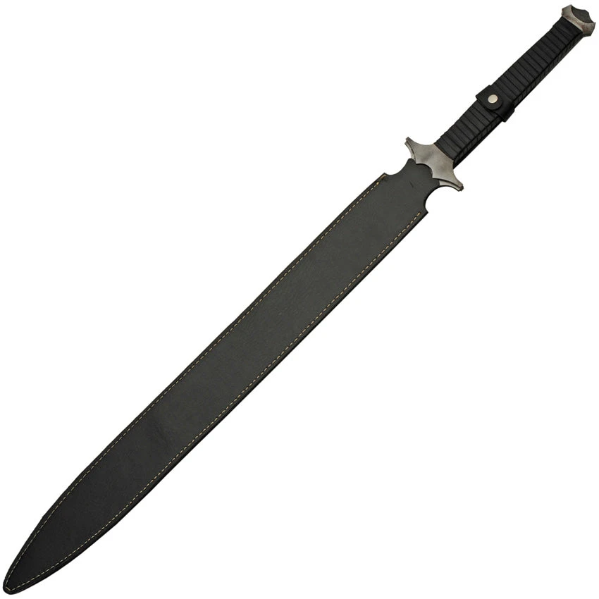 Dark Xiphos Sword Black Leather Wrapped Manganese Blade W/ Belt Sheath 926981