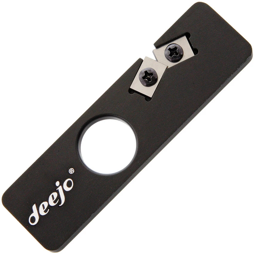 3.5″ overall. Black aluminum handle. Pocket sharpener at a fixed 40 degree angle. Double-blade tungsten carbide face.