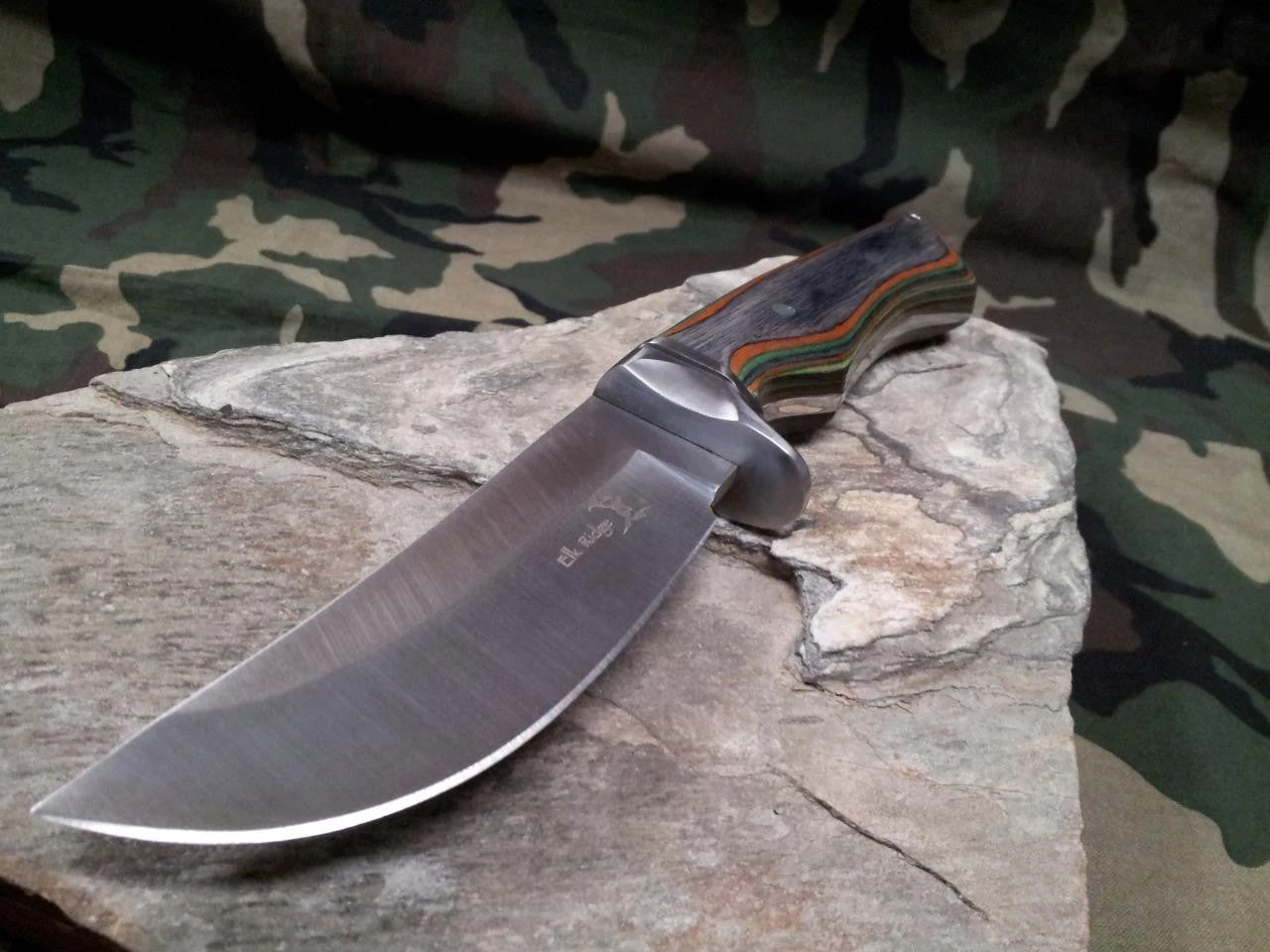 Elk Ridge Fixed Knife 8.4″ Overall Plain Multi Color Wood Handle Hunting – 545gw