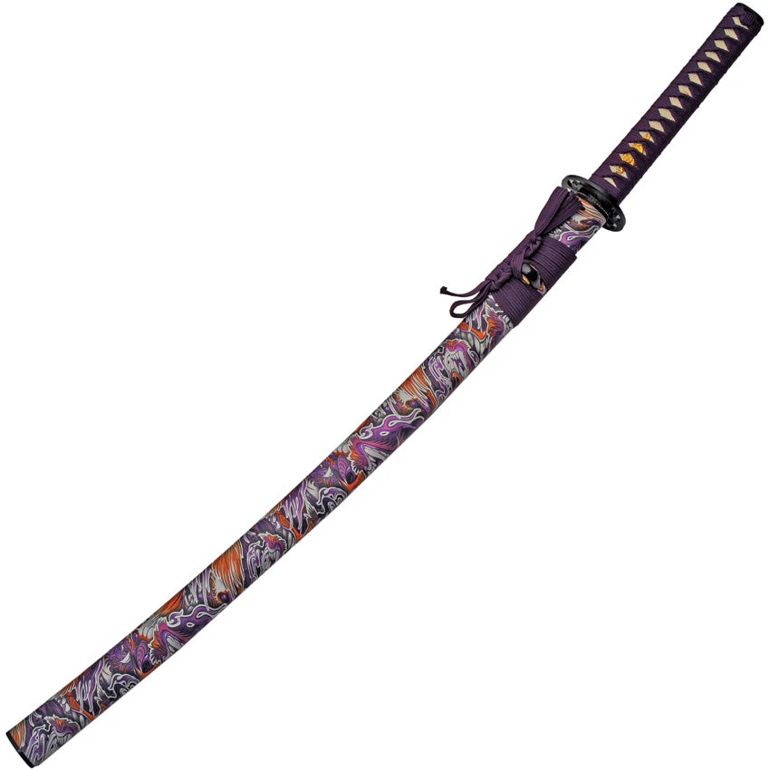 Growling Dragon Katana Purple Wrapped 1045 Carbon Steel Sword W/ Scabbard 926995