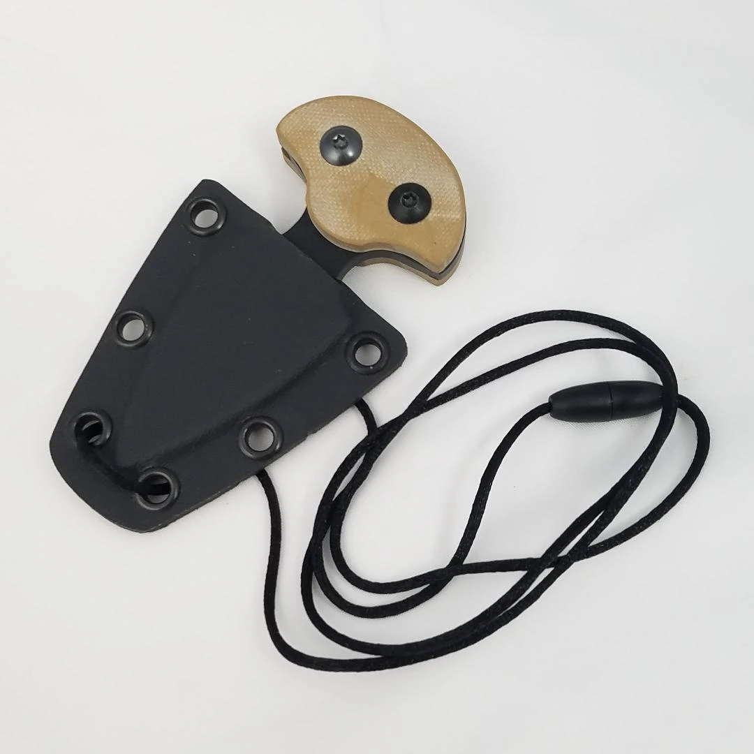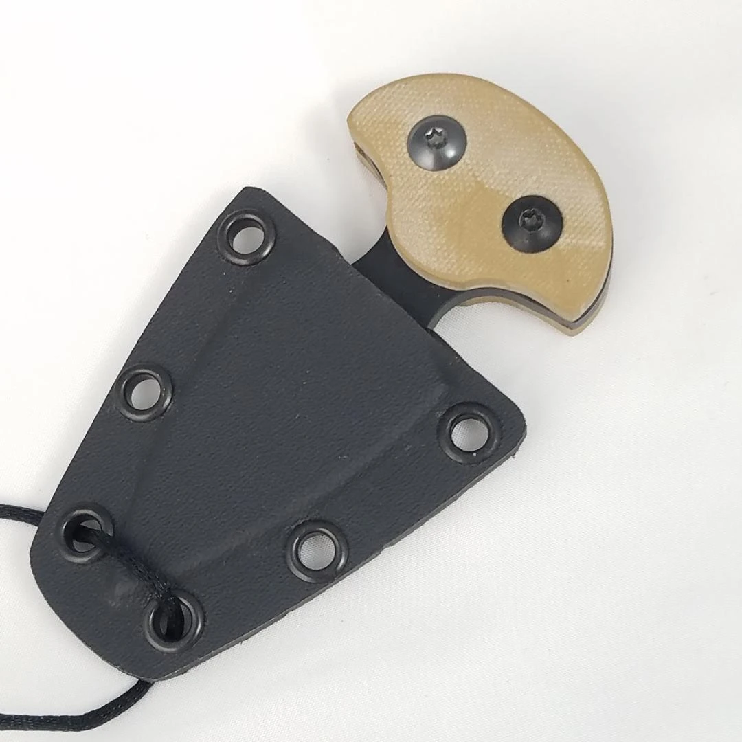 4” overall. 2.25” black finish double edge 1095 steel dagger blade. Coyote brown G10 handle. Full tang. Black Kydex sheath. Bulk packed.