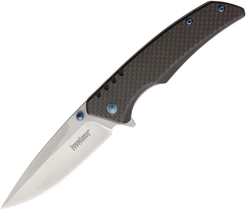 Assisted opening. 4.5″ closed. 3.25″ stonewash finish 8Cr13MoV stainless drop point blade. Black carbon fiber handle. Pocket clip. Thumb stud. Boxed.