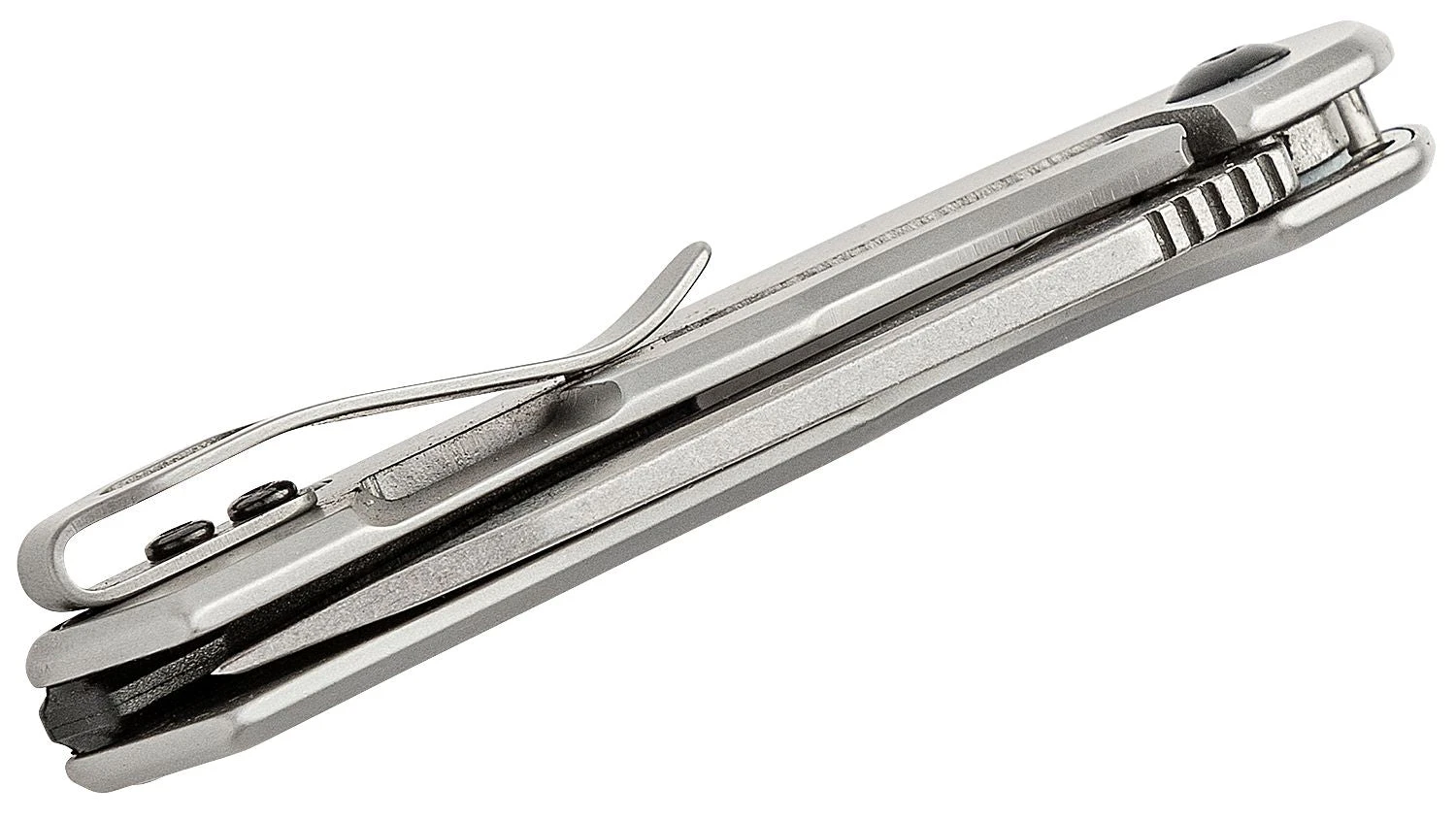 3.25” closed. 2.25” stonewash finish 4CR14 stainless steel clip point blade. Gray stainless steel handle. Ambidextrous. Tip-Up pocket clip. Framelock. Boxed.
