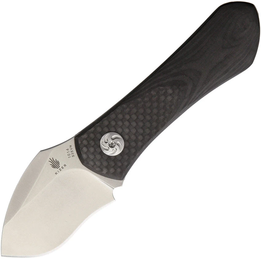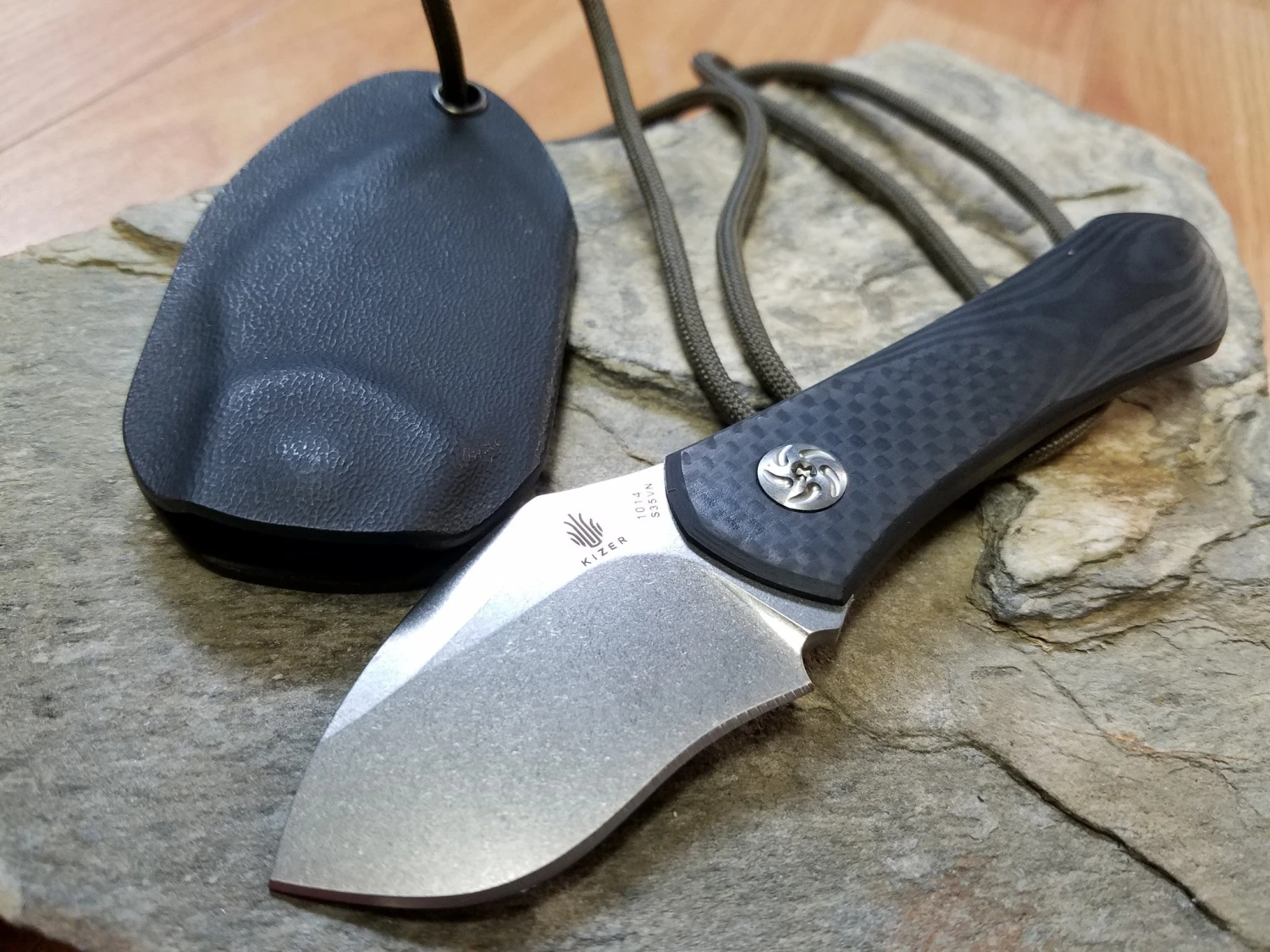 The Kizer Thumbper Long is a neck knife design from Matt Cucchiara. With a longer handle than the Short version, the Thumbper Long offers a full grip and increased control during use. This model features a CPM-S35VN stainless steel blade with a stonewashed finish. Its tapered handle is made from a solid piece of carbon fiber. A lightweight build and slender design makes carry as a neck knife so comfortable, you’ll hardly notice it’s there. Includes a Kydex neck carry sheath and a length of OD green paracord.