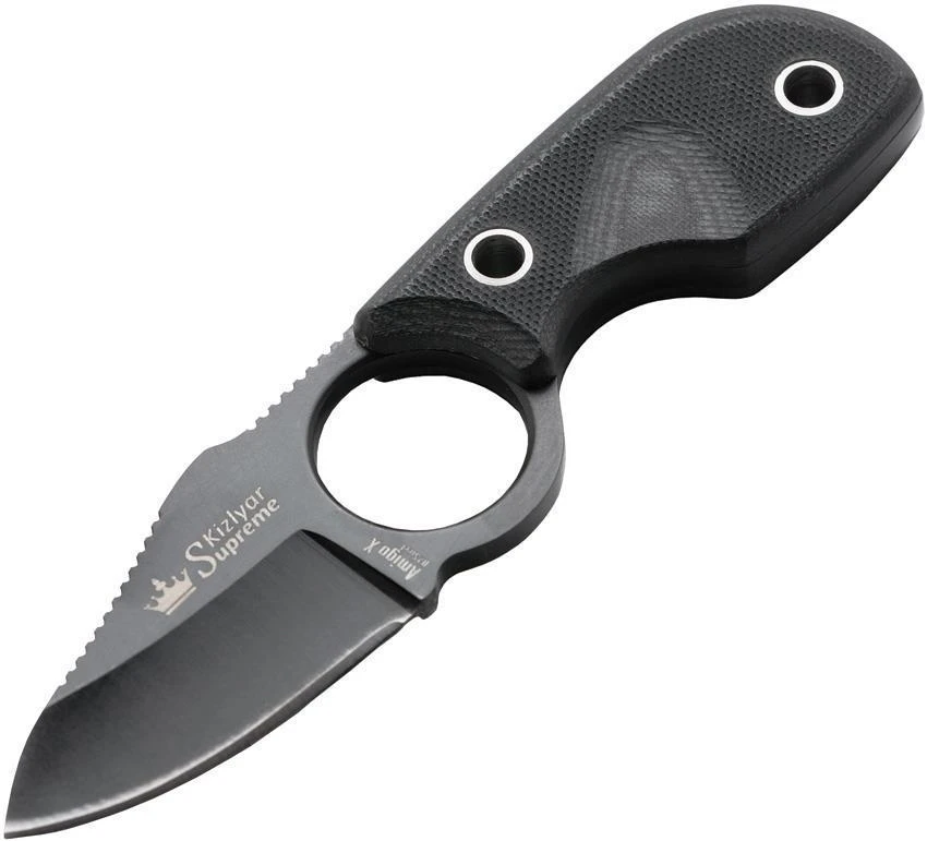 Kizlyar Amigo X Fixed TiNi D2 Tool Steel Blade Black G10 Handle Neck Knife 0091