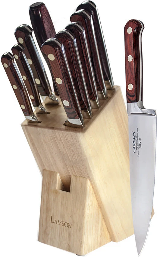 Lamson Kitchen 10pc Red-Mahogany Handle Maple Block Silver Series Set 39970