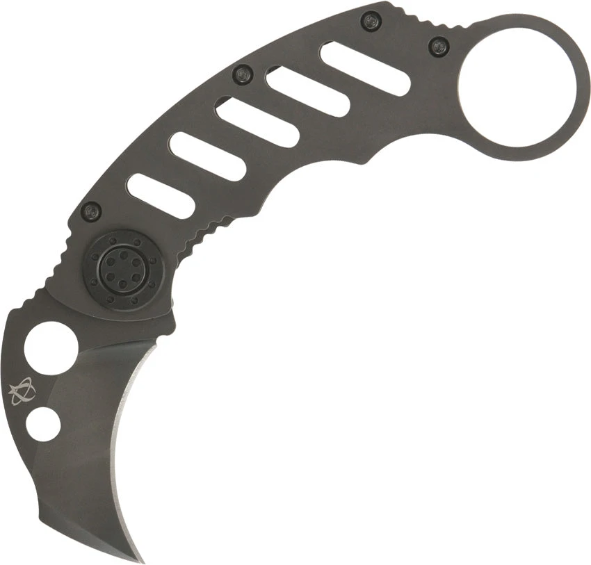 4 5/8″ closed framelock. Black finish M-vX tool steel modified tanto blade with thumb hole pull. Black finish 420 J2 stainless frame with finger ring. Black finish stainless pocket clip.