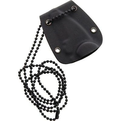 3 1/4″ overall. 1 1/4″ black finish stainless drop point blade with thumb ridge. Full tang. Green bone handles with black cord lanyard. Black Kydex sheath with ball chain lanyard.