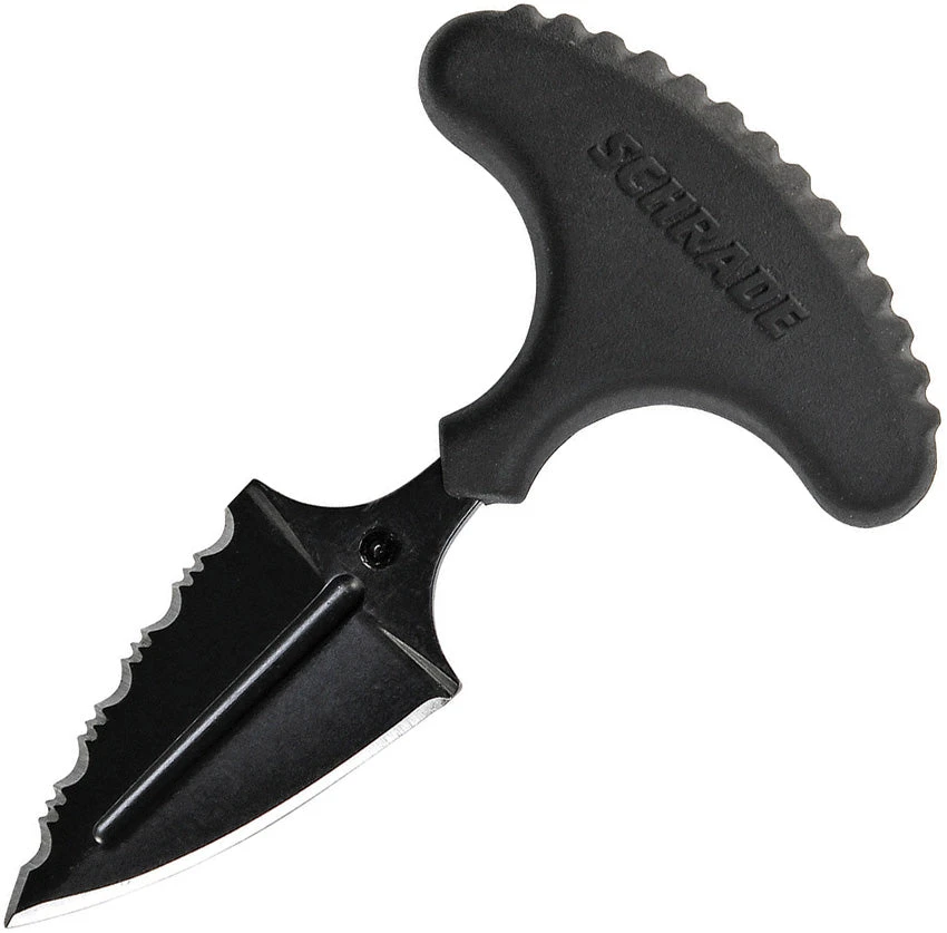 SCHRADE 2.75″ Black Partially Serrated Edge Push Dagger Fixed Blade Knife W/ Keychain – F50