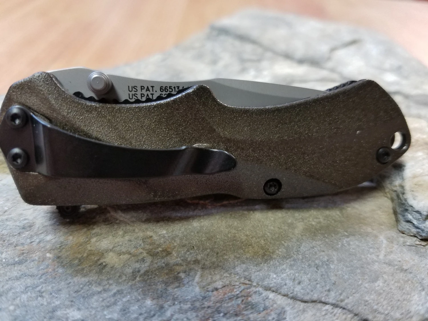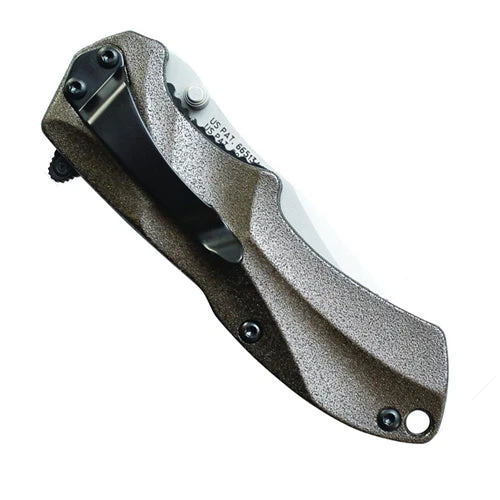 Linerlock. Brown Powder Coated Aluminum Handle. Straight Edge. Assisted Opening AUS-8 Stainless Steel Sheepsfoot Blade. Thumb Stud and Pocket Clip. Lightweight and Compact. Length Overall: 5.9″. Length of Blade: 2.6″. Length Closed: 3.3″. Boxed.