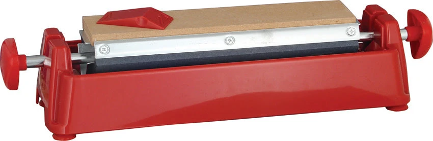 Includes 6″ medium Arkansas stone, 6″ fine Arkansas stone, and 6″ coarse synthetic stone. Stone mounted on a molded plastic triangle with handles for easy rotation. Rotating center stone selector for easy reference to the various gradations of stone. Includes a honing solution to clean and protect the sharpening surfaces, as well as a non-skid base and a “V-trough” oil catcher.