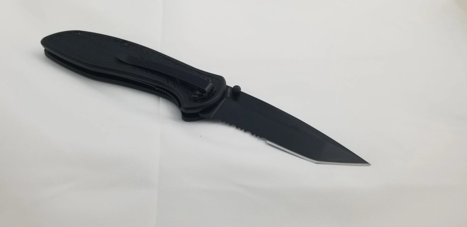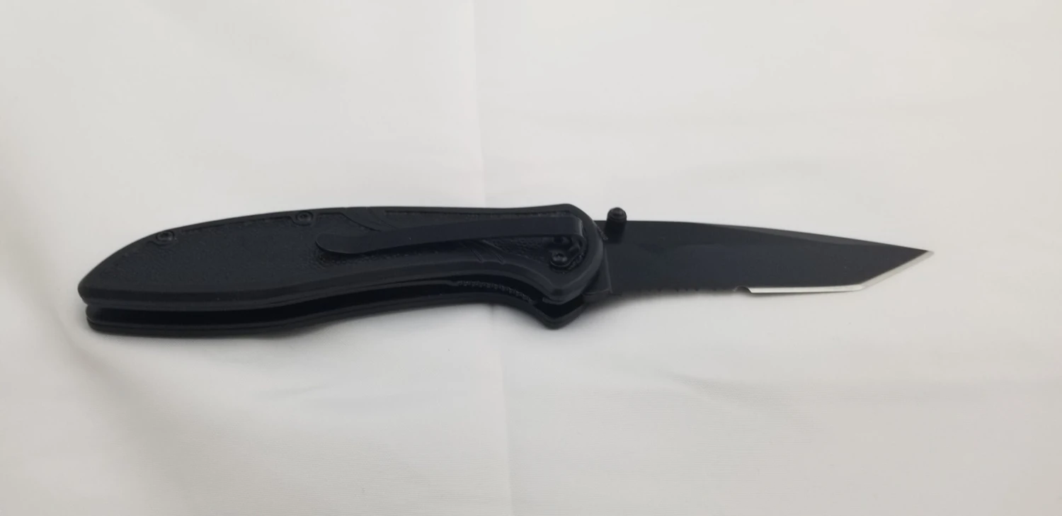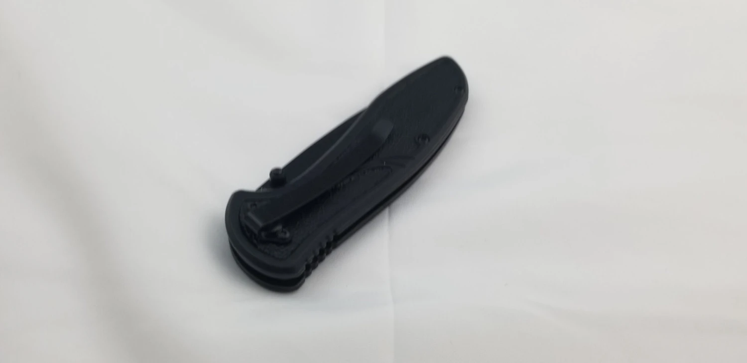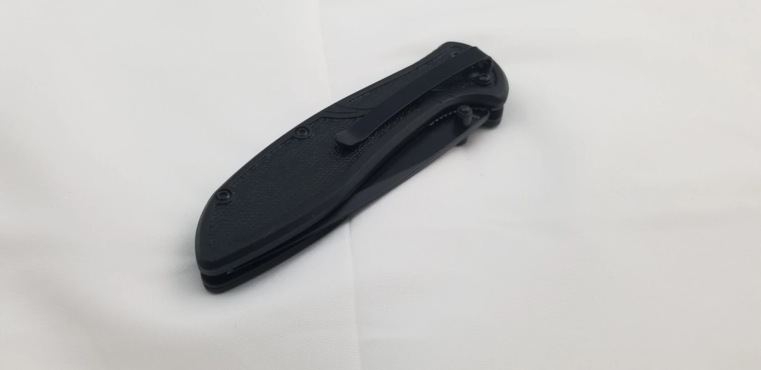 Assisted opening. 4″ (10.16cm) closed. 3″ (7.62cm) black oxide coated 8Cr13MoV stainless blade. Black aluminum handle. Thumb stud. Lanyard hole. Pocket clip. Clam packed.