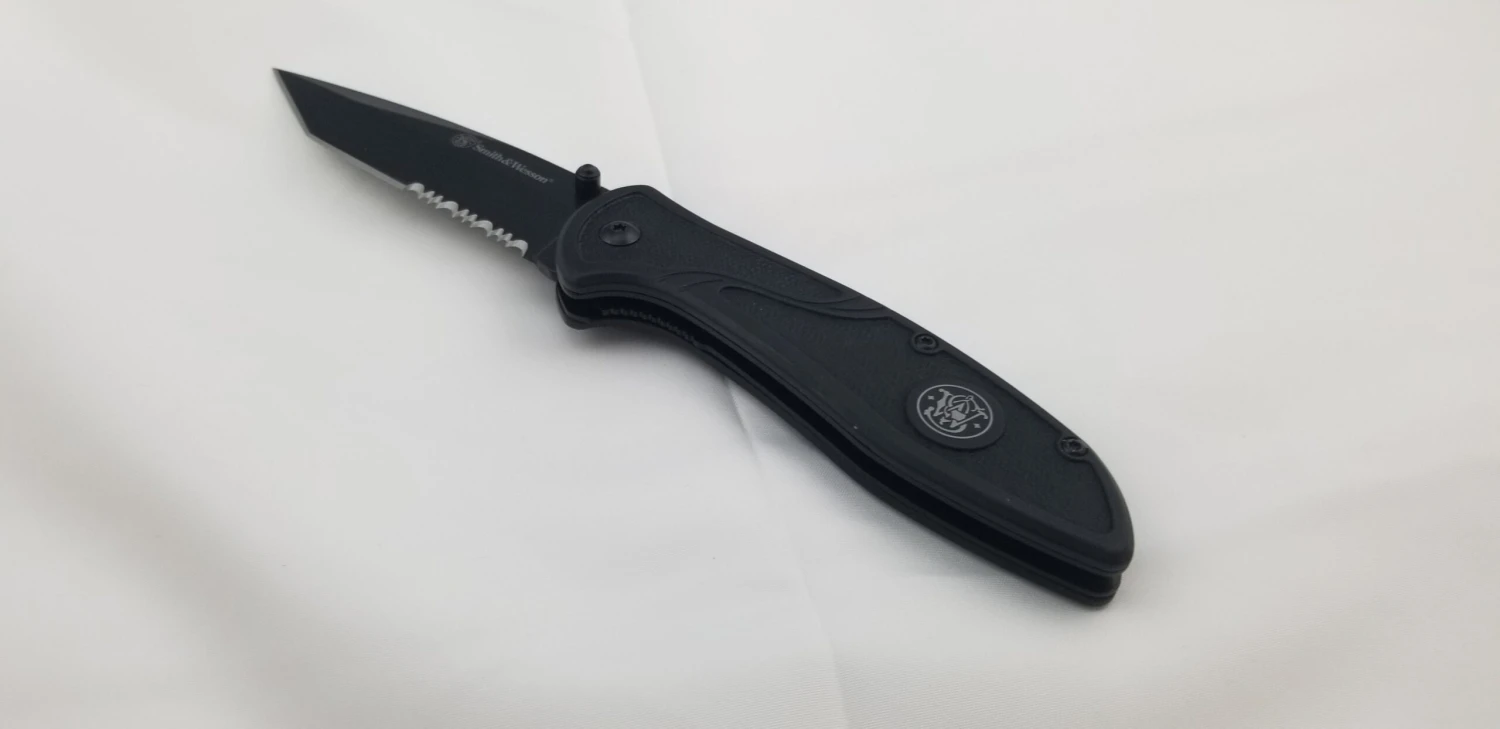 Smith & Wesson Linerlock A/O Black Aluminum Folding 8Cr13 Pocket Knife 1084305