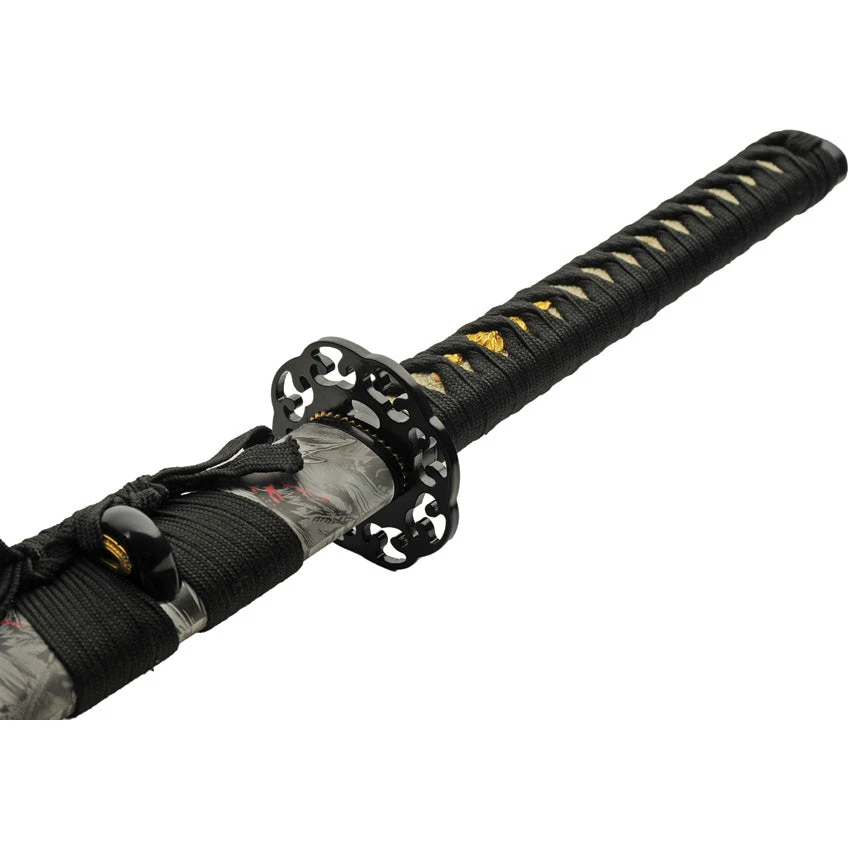 Snarling Wolf Katana Black Wrapped 1045 Carbon Steel Sword W/ Scabbard 926994