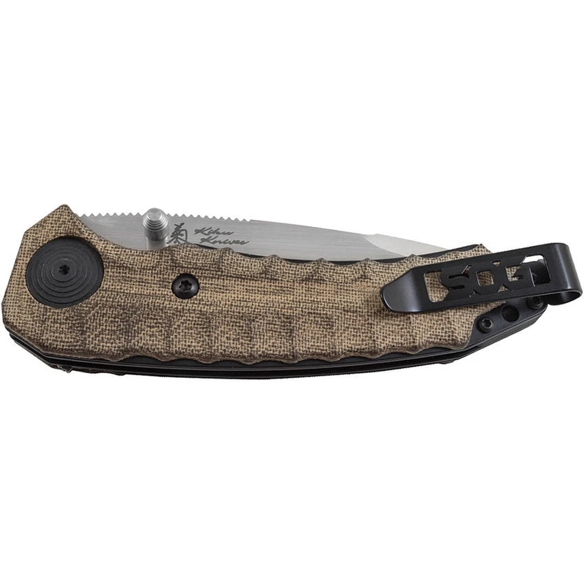 SOG Kiku Button Lock A/O Assisted VG-10 Folding Green Micarta Knife KU3001