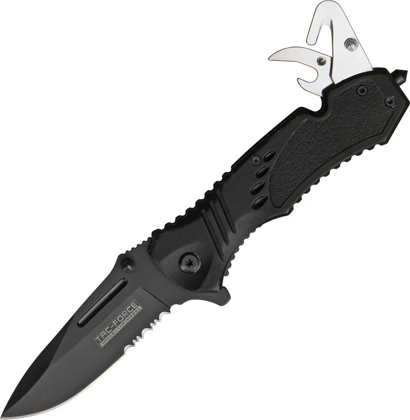 Tac Force Rescue Linerlock A/O Black Aluminum Handle Hook Folding Knife 606B