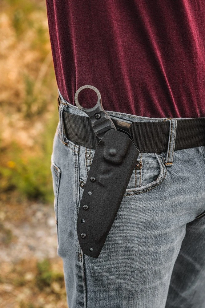 Loosely based on common karambit designs, the TOPS “10/27” is definitely a unique approach. The angles and shape of the knife are perfect for the reverse grip popular with karambit knives, but you can use it quite easily in a traditional hammer-style grip as well. Slashing and ripping cuts are performed quickly to make this knife dangerous in the right hands.