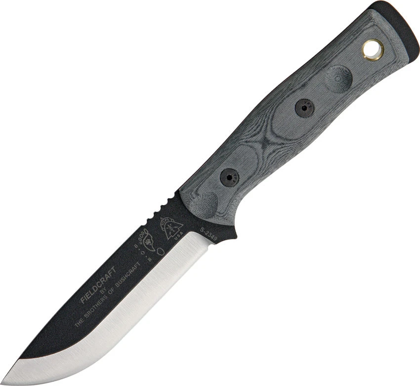 TOPS Fieldcraft BOB Fixed Hunter Blade Black Linen Micarta Handle Knife BROSBLM