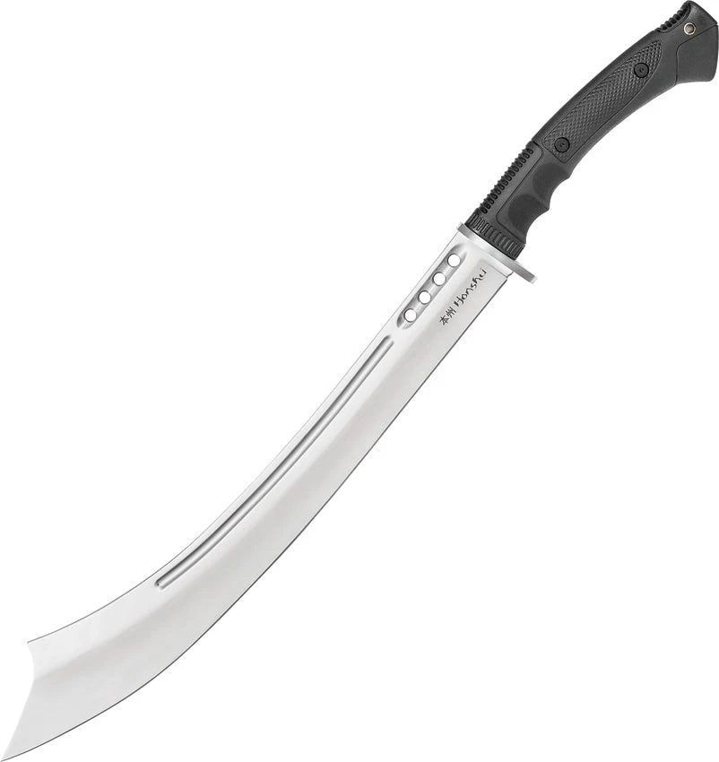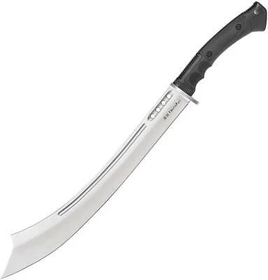 21.25″ satin finish 1065 carbon steel blade. Black TPR handle. stainless guard. Black nylon belt sheath.