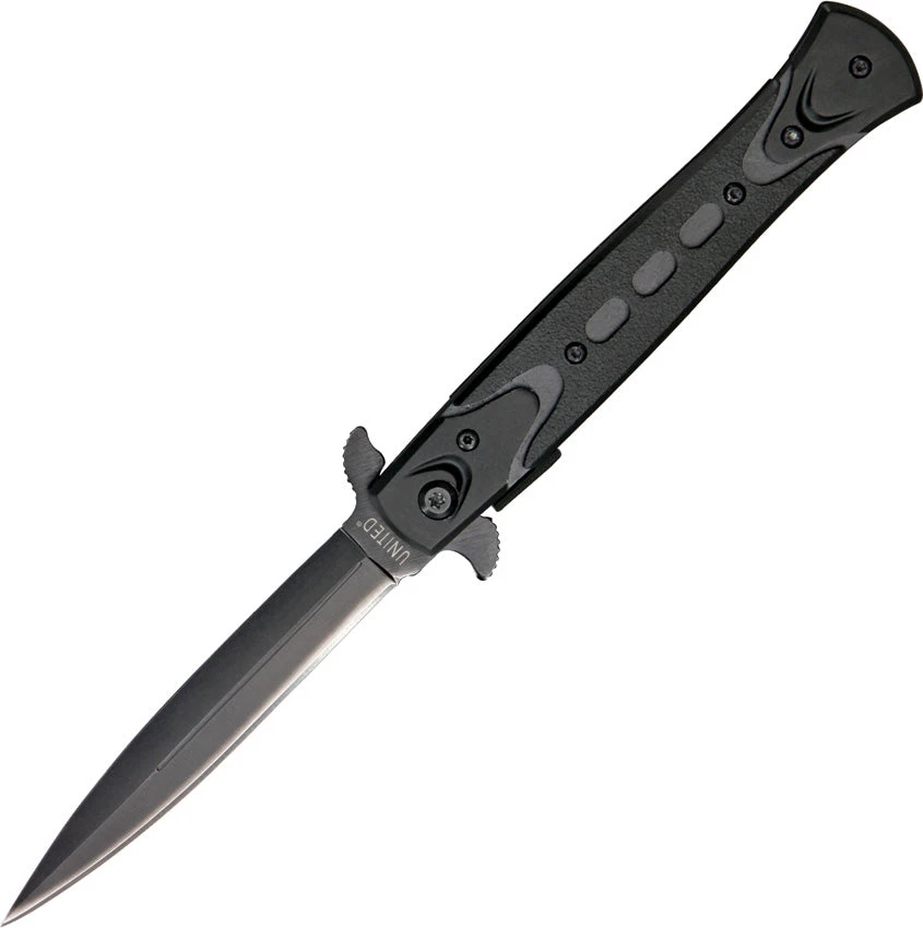 United Cutlery Rampage A/O Folding Blade Black Aluminum Handle Stiletto Knife 2885
