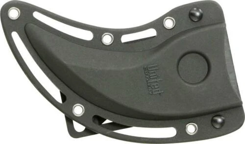 United Cutlery Undercover Karambit Black – 6 1/2″ overall. 2 3/4″ blade. One piece stainless construction with machined hole cutouts and finger holes. Molded black belt sheath. Comes boxed.