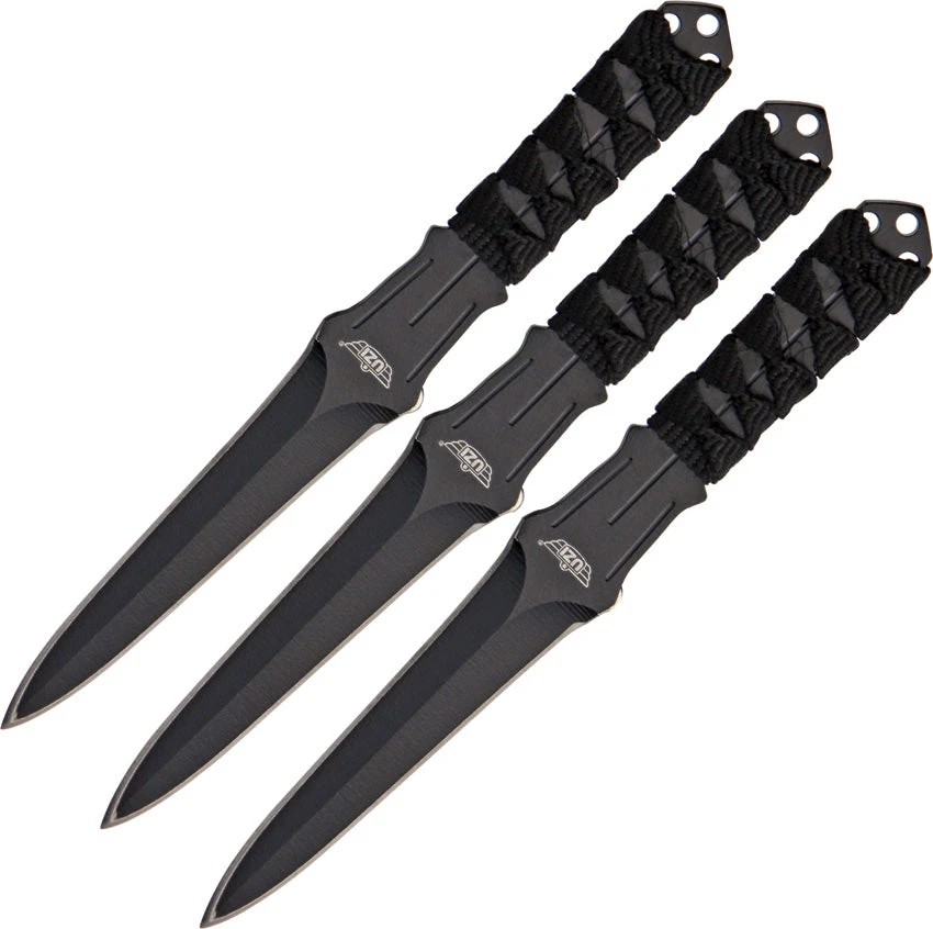 UZI 3pc Black 6″ Double Edge Dagger Style Fixed Throwing Knife Set KT03